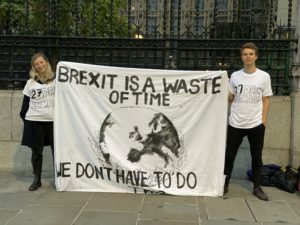 We started holding the sign in March because we were supposed to leave the EU then. We are here for an hour every day. We were tired of apathy and I had to do something instead of being depressed. It feels like a watershed movement for the West and that we are taking a step back. There are so many stereotypes used against each other and driving us apart. A divided Europe is good for some people. I worry that things are going on under the table with people who have the power.