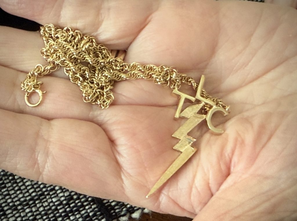We went backstage after another Vegas show. You had to go through the kitchen to get there, which I thought was interesting. Elvis was always glad to see people from Memphis. He gave all the women TLC (Tender Loving Care) necklaces and the men TCBs (Taking Care of Business). I still have mine—one of my most treasured pieces of jewelry.