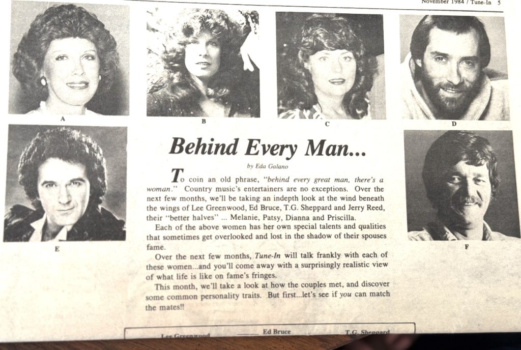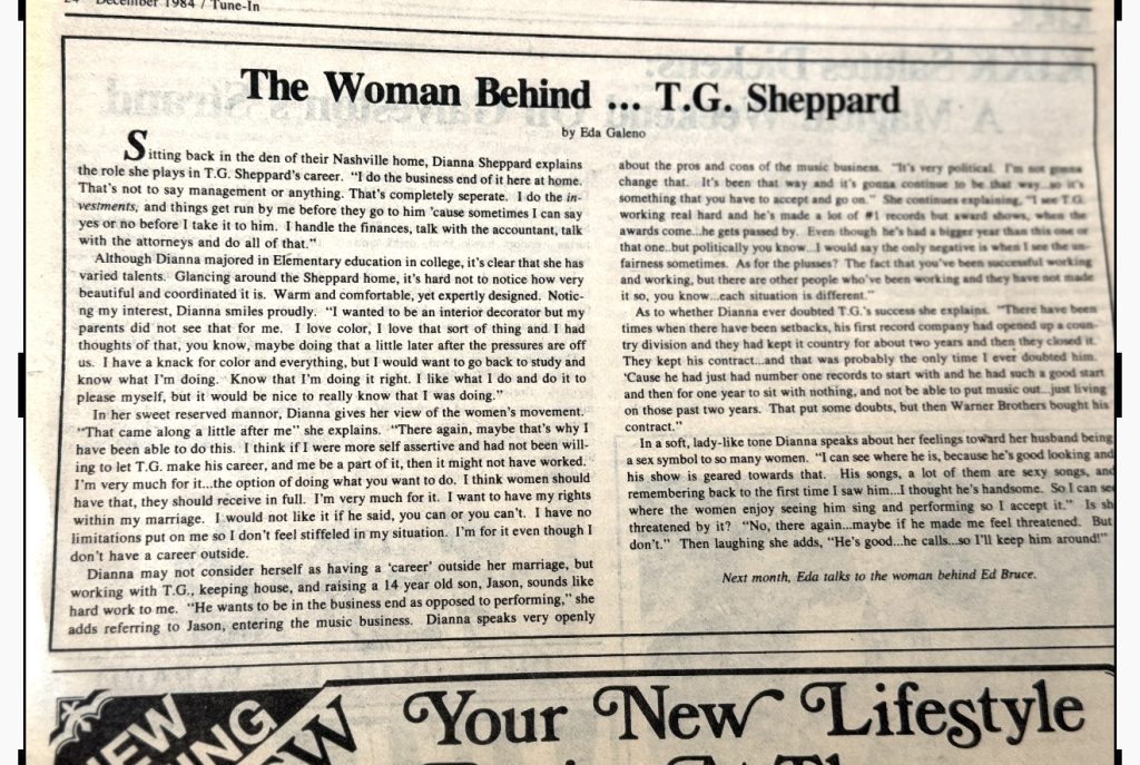 After ‘Motels and Memories’—his third number one—we moved to Nashville. TG truly became TG Sheppard. It’s funny how you call your husband “Bill” for ten years, and then it’s ‘TG’ for the next ten.