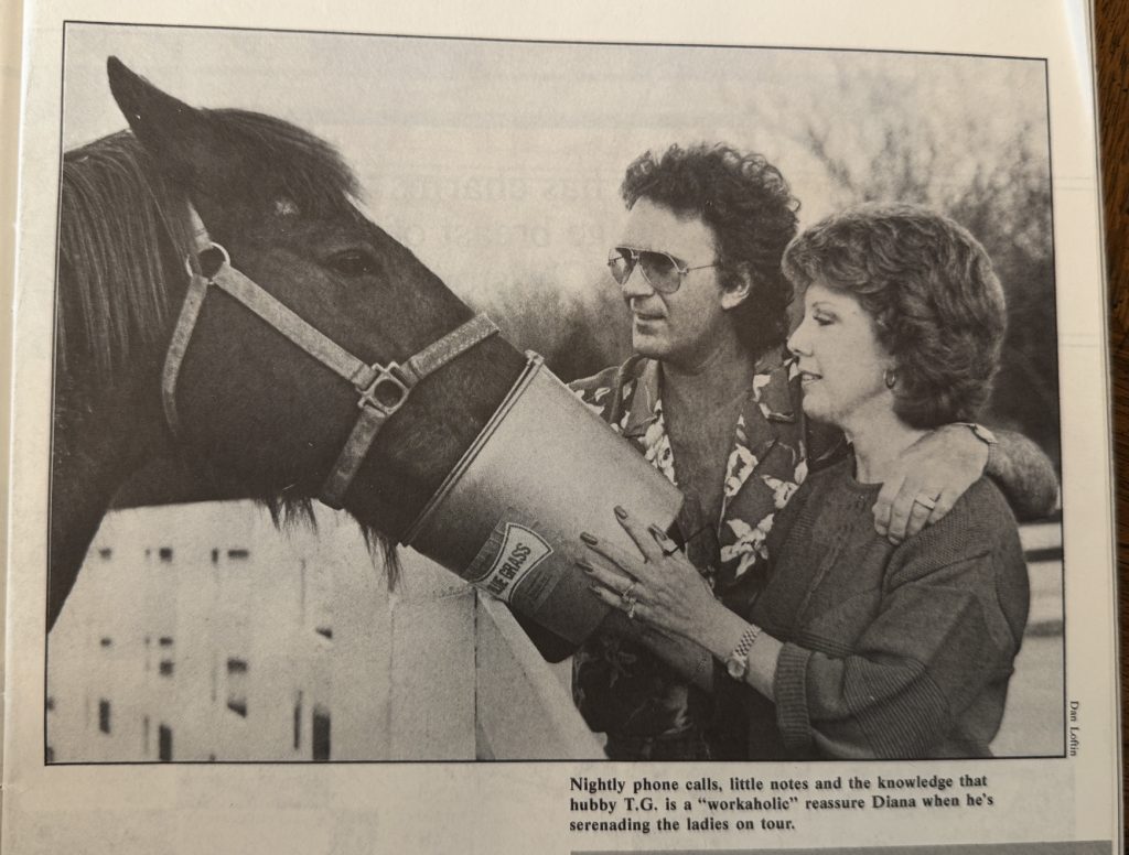 Things changed when we moved to Nashville. In the early years, TG and I had dated fast and serious. He wasn’t letting go. But later on, I became lesser because of his notoriety. I wasn’t jealous—I knew you couldn’t survive in that world if you were. I met all kinds of people, some famous, some not. I took care of our son and kept things running, including our 30-acre horse farm.