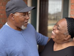 Right now, we are living with my daughter, her husband, and their five kids. We set up a bedroom in the den because we didn’t want to take a kid’s room and mess up their patterns. I am helping with the cooking and love being around my grandkids this much. We spoil them and they keep me laughing and my mind good. My husband said God is on top and looking down on us.