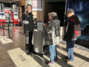 I have been working at the AMC Theater in Daphne for ten years. My name tag says that The Land Before Time is my favorite movie; The Terminal is another favorite. This is my first and only job, and I love it. I greet guests and scan their tickets as they enter the theater. Our slogan is: ‘we make smiles happen.’ Making people smile is my job. I have weekly regulars, and they tell me that I brighten their day or people write about me in our guest surveys.