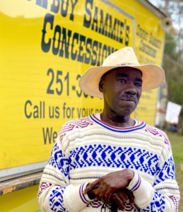“I live in the house where I was raised in Prichard. When I was 16, I dropped out of high school and joined the Job Corps. That saved my life and the Lord found me. When I came home, most of my friends were killed or in jail. I didn’t want that to be me. I have always been an entrepreneur, I just didn’t know that one day I would go blind.. I cleaned cars and had my own parking lot striping business. I was cleaning a guy’s car and bought a hot dog from his food truck that didn’t look professional. I thought if I had my own trailer I would make it pretty. God spoke to my heart and told me to build it. I bought my trailer in 1997, but let my dad have it because I didn’t have a mental vision for it. It sat at my dad’s house for many years.