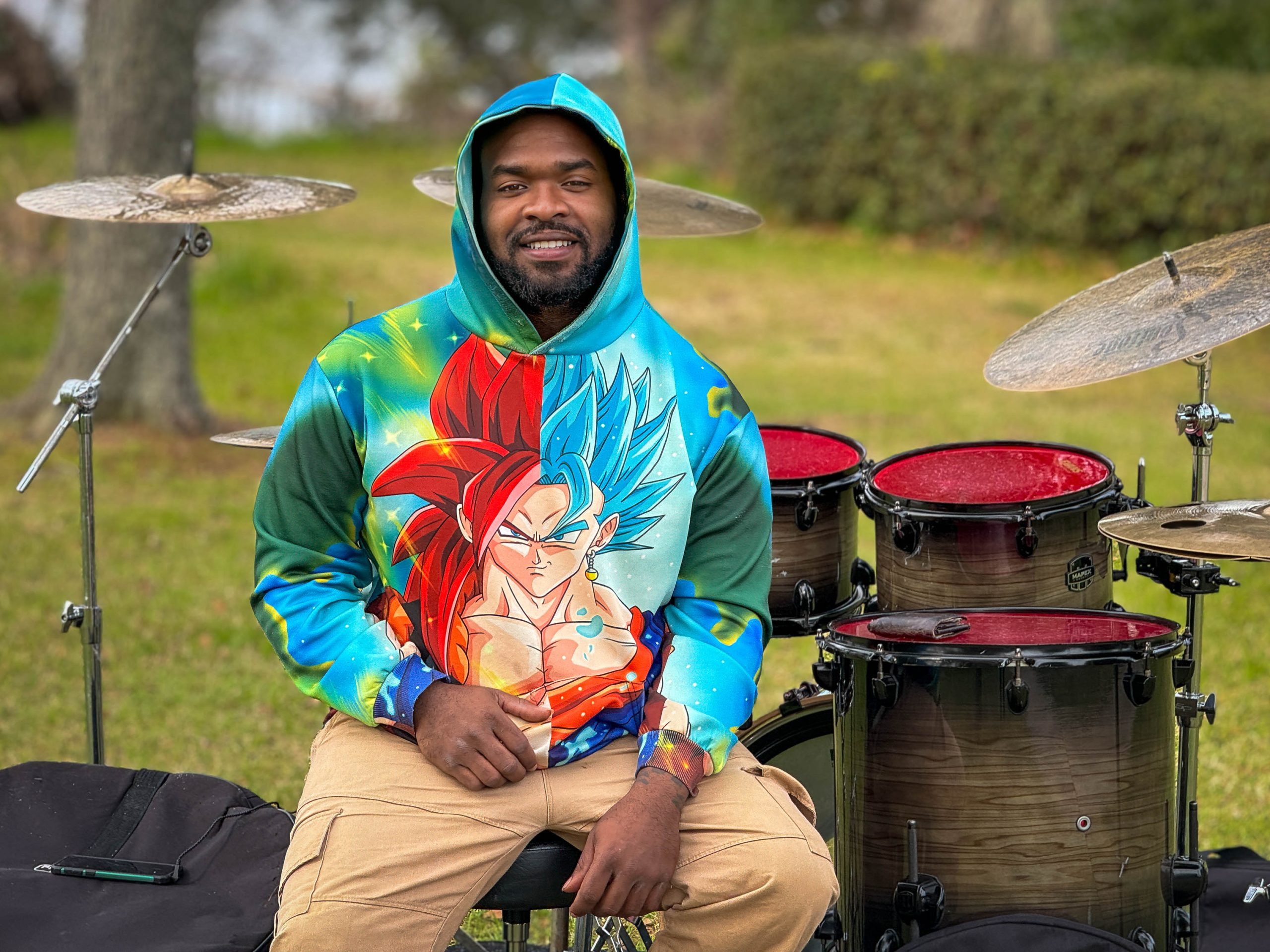 “I came out of the womb playing drums. l was always banging on something. I’m out here today for enjoyment. I play a lot of gigs, but I have to keep it fun. Playing drums is also a great way to relax and release stress. It’s even better playing outside around the water, grass and trees—being next to God in His natural force.