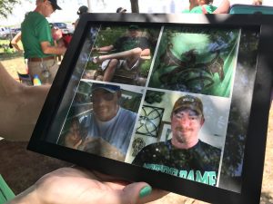 “We are competing in the boat race as SS John Mac in honor of my late husband John McCafferty. He passed away last August with gallbladder cancer. He was diagnosed at age 41, which is relatively rare. He fought it for 21 months with surgery, radiation, chemo and trips to MD Anderson. The team racing with us has some sort of connection with me or John through my fitness class or church, friends from high school. John and I were high school sweethearts and met in 9th grade, we were together since 1989. He was the love of my life. My church support has been phenomenal and I get through every day with the grace and support of Jesus Christ. I started kickboxing in February of last year and John encouraged me to do that. Kickboxing is a great way to get out anger and aggression. The first class I went to, I almost started crying because I imagined cancer was the bag. I just started taekwondo a month ago. I do mud races, too. Going through this has made me more sensitive and compassionate. We have a son, Aden, who was 8 when John died. He said he would rather have John for 8 years the way he was than have him forever and he not be a good daddy. Out on the water during the first boat race today, I was overcome thinking of him and cried. Before I start a race, I always blow a kiss to the sky for him. I think about him all of the time. This race has helped me with my own grief, but also a way to honor him, he was a good husband and a good father. He was kind and sensitive and never met a stranger. He worked hard even though he was in constant pain from other issues besides cancer. He can’t live anymore, but Aden and I are still here and he can live on through us. I want to have as many experiences as I can. Since his death, I have been less anxious and am more open to new things and more brave and courageous. We were together since we were 13 and I am going to be 43 this year. I have had to figure out who I am without my other half.”