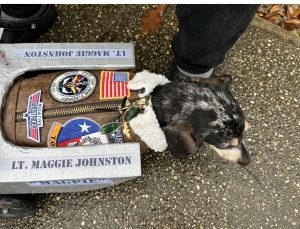“Her name is Maggie, but her nickname is Mag Pie. She is a wheely dog and was paralyzed when I adopted her.