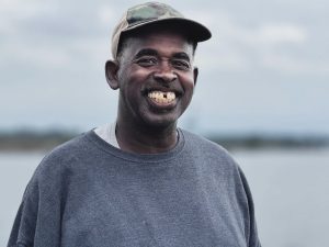 “I started fishing at the bay when I was about 18. I am 62 now and still love to fish. I catch redfish, sheepshead, and black drums with shrimp. Going home with fish in the cooler is a good day. I cook them up and share them with older neighbors who are like second mothers to me. They will be looking out the window and waiting for me this afternoon. They are good people, and I love to see the smile on their faces.