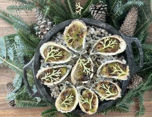 (The pictures were take at the Experience the Oyster event in Gulf Shores. Jesse made the crackers on top of his oyster out of pine needles.)