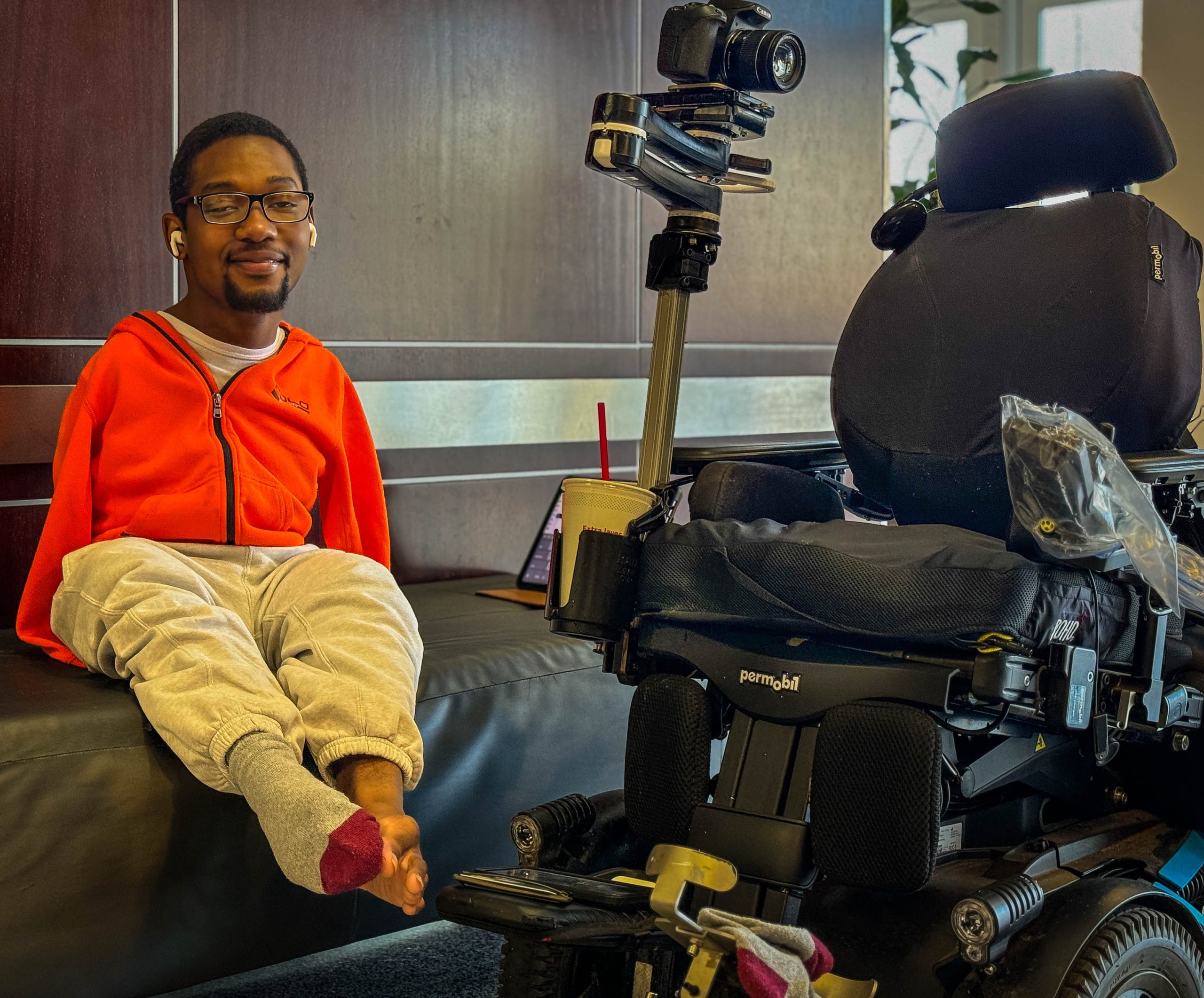 I took a photography class and enjoyed capturing moments, so I’m majoring in photography. I take pictures from an app on my phone that I touch with my toe. I also type with my toes on my computer. Technology is amazing.