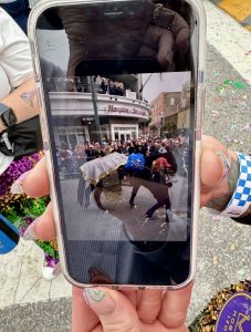 Deanna: “Dad started the Mobile Mystics Marshalls, and the marshalls ride the same horse every parade. Dad passed away in 2016, three weeks before Mardi Gras. The Mystics draped Dad’s cape over his horse and put his boots backward in his saddle. Dad led the parade in his final ride. A couple of years before he died, I found out I had Leukemia. It happened so fast; my oncologist told me I only had two or three days to live. But I’m about to be ten years cancer-free. Danielle has been with me the whole way. Mardi Gras is our celebration of life, family, and friendship.”