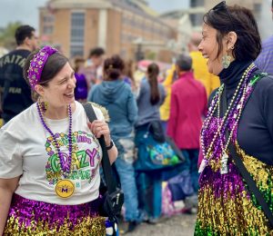 Danielle: “This is our Double Ds weekend. We are Danielle and Deanna–both queens of the Mobile Mystics. Our husband and boyfriend don’t like Mardi Gras, so we load up and do this weekend together.”