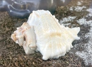 “We are taking my hermit crab to see the bay. Her name is Stella, and she is coming out of her shell more. She eats hermit crab pellets and drinks salt water. She scoops her poop out of her shell with her back legs. When I let her out, she is surprisingly fast .