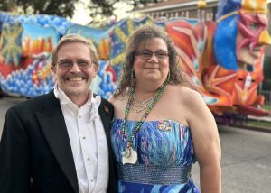 This is a special day for us. Joe and I met 25 years ago on a blind date at a Mardi Gras ball. It must have worked because 25 years later we are still celebrating Mardi Gras together.”