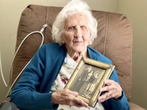 “I’m 97 years old. I grew up in Schlater, Mississippi on my granddaddy’s farm on the Quiver River. My granddaddy owned 80 acres, and my dad and uncle farmed it. I helped them clear the land. We poisoned the trees so they would die and fall. We plowed the land with a mule. I hoed and picked cotton. We worked on the farm and swam in the river to cool off. I never knew anything except work. My daddy was also a fisherman. When I came from school, my brother and I sat beside the fireplace and knitted his nets. We didn’t have much money, but there was always plenty to eat. Granddaddy grew things or hunted and brought food home.