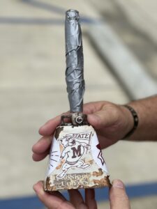 I graduated, got a job, and moved around, but I was active in the Bulldog Club and kept going to the games as much as I could. The games were hard to get on the radio in Hattiesburg. I parked my car a certain way in my front yard to pick them up. I opened the car doors and sat in my lawn chair to listen with my cowbell and beverage of choice. I was the crazy neighbor ringing the cowbell. In my younger days, a loss would upset me through the middle of the week. There were a lot of days of being upset. Now that I’m older, I let losses go the next day. When State beat Auburn in football and went to number one, I rang my cowbell so hard I broke it. A welder fixed it.