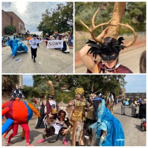 “We started the Society of Monstrous Women because you can put on a mask and be whatever you want to be. You can push back on what society thinks a monstrous woman is and be a monstrous woman. All of our costumes have meaning. This is the mother costume because when you become a mother you aren’t a woman anymore, you are a plaything. Every time I tell a mother what this is, she says, ‘yes, that is the truth’.”