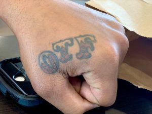 My first tattoo was my mother’s name, Charlotte. I was working at McDonald’s when I got it. She caught me in the middle of me getting it and I told her it was a rash. The tattoo on my hand says OTF for Only The Family. I have MOB on the top of my arm because I love this city. My grandmother’s name, Pauline, is on my other arm. I also have tattoos that say Jesus and Lord Forgive me. They all mean something about who I am and I am not ashamed of it. Family is important to me and one day I want to be a good father who can nurture and teach my kids. That is a long way off.