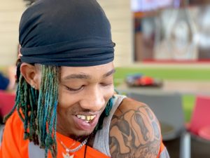 This job has been life-changing and given me something positive in my life. In my world, if you aren’t doing the same as everyone else, you are strange. Every day I walk out of my door, block out the negativity, and stay in my own zone. I have learned about personalities and how to work with them. When I was in eighth grade, I did power washing and other jobs for a neighbor. I earned $40, and bought his lawnmower. I cut everyone’s grass in our neighborhood. I came home with money and my mom stopped paying for my haircuts. I wasn’t going to pay for them, so I bought clippers and learned how to cut hair. I also started cutting other people’s hair. Now I have customers and cut hair on the days I am not working. The dream is to have my own barber shop. I also rap and sing. I write songs about my life. You have to think about the worst so you can avoid the bad situations. Writing songs helps me do that.